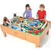 Encourage endless hours of creative play with this interactive Imaginarium Classic Train Table with Roundhouse Wooden Train set, a Toys 'R' Us exclusive. Scratch-resistant and easy to clean, the large train table fits the included double-sided playboard, which features graphics on one side ...